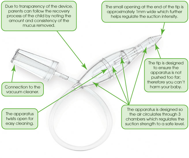 The Baby-Vac Nasal Aspirator was designed by an award-winning Hungarian scientist to effectively and safely remove mucus from the nasal cavity in an efficient and gentle manner. It has been clinically tested and approved and recommended by pediatricians and ENT specialists from around the world. The Baby-Vac Aspirator is also FDA registered and research has shown that using the Baby-Vac removes secretion from the nasal cavities to accelerate recovery in case of sickness as well as improving breathing and the prevention of further disease.